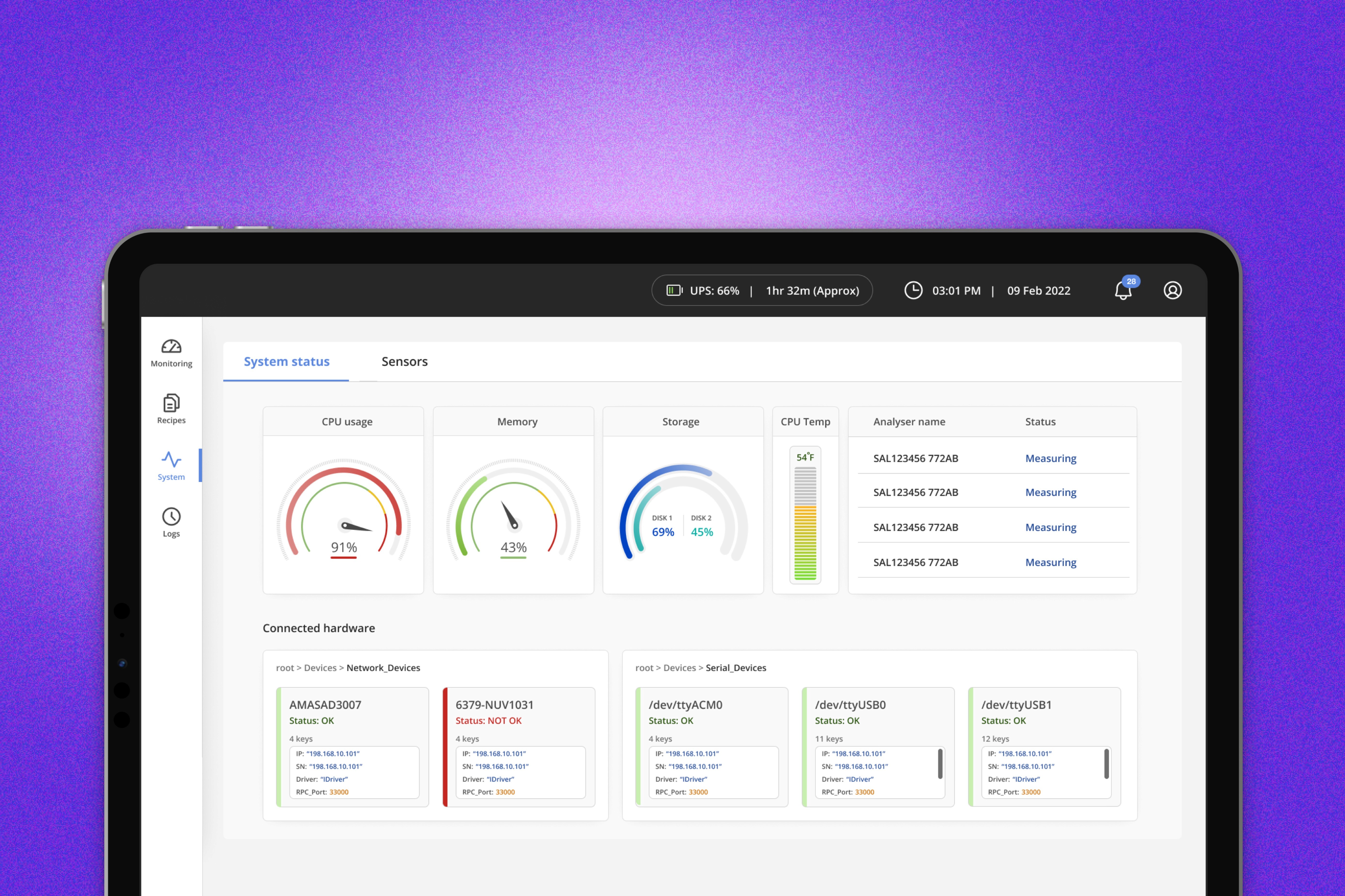 Monitoring system dashboard