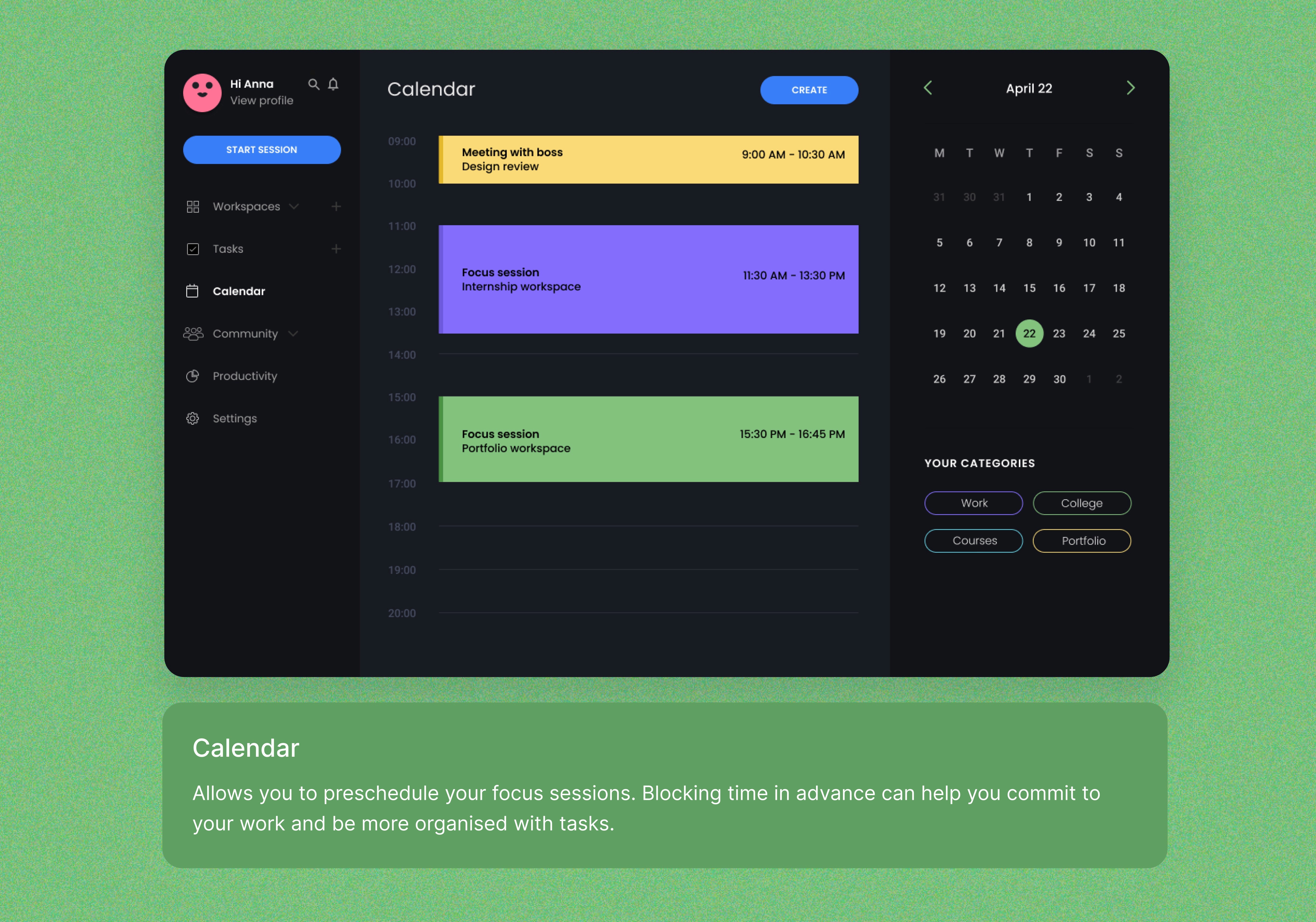 A cloud-based productivity tool conceived during my Bachelor's Thesis, designed to cultivate deep focus amidst digital distractions by enabling task-specific workspaces and blocking interruptions across all devices."