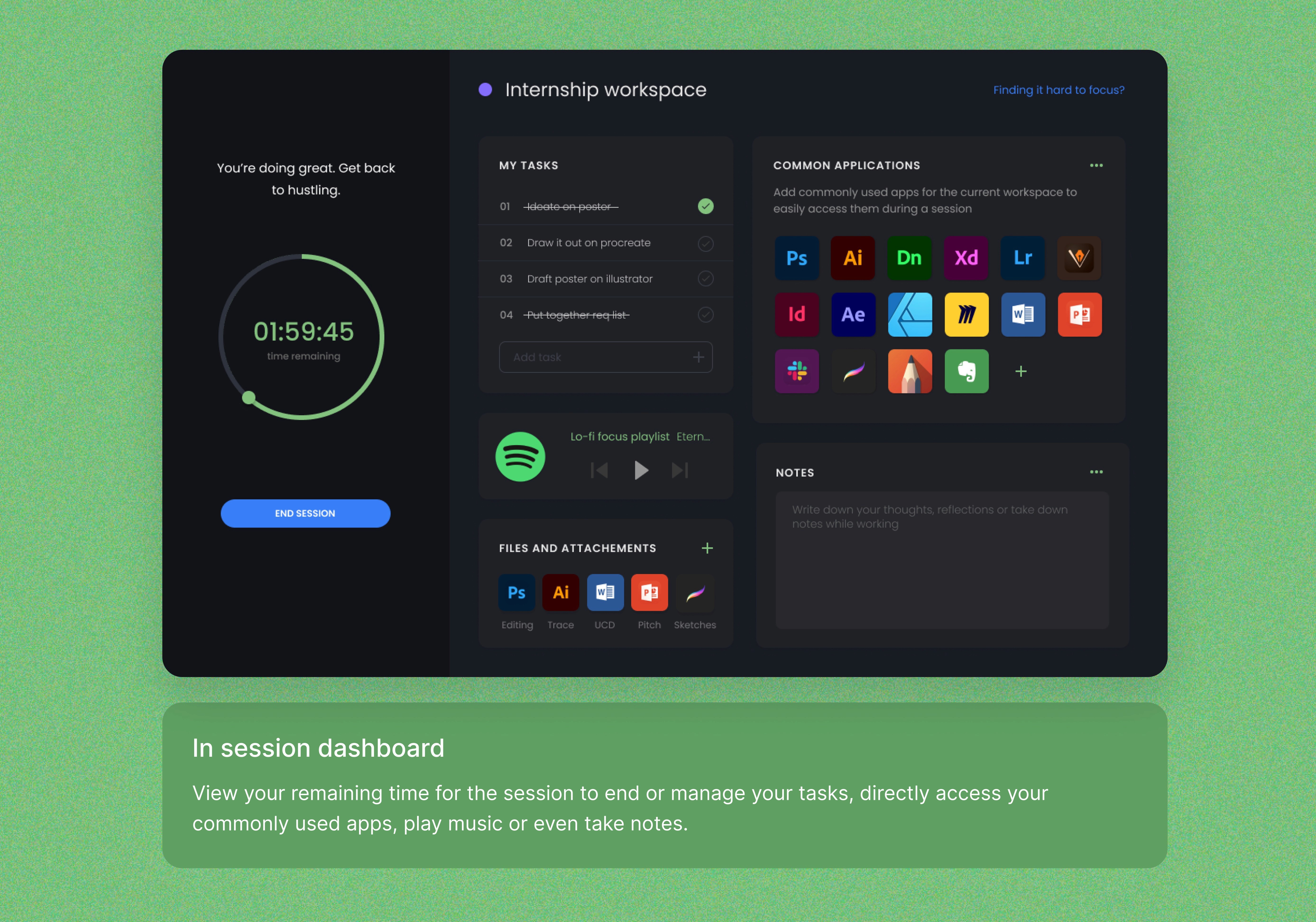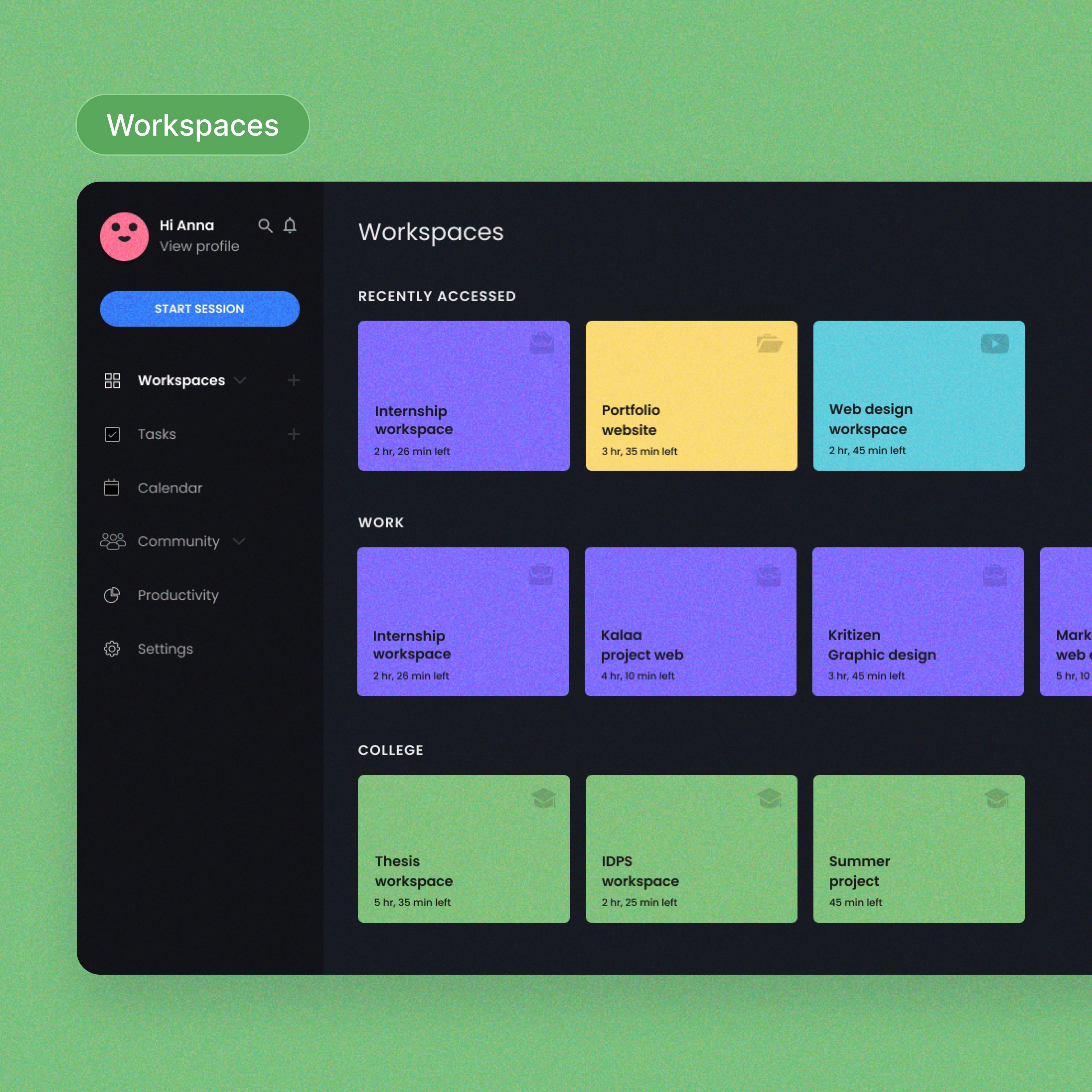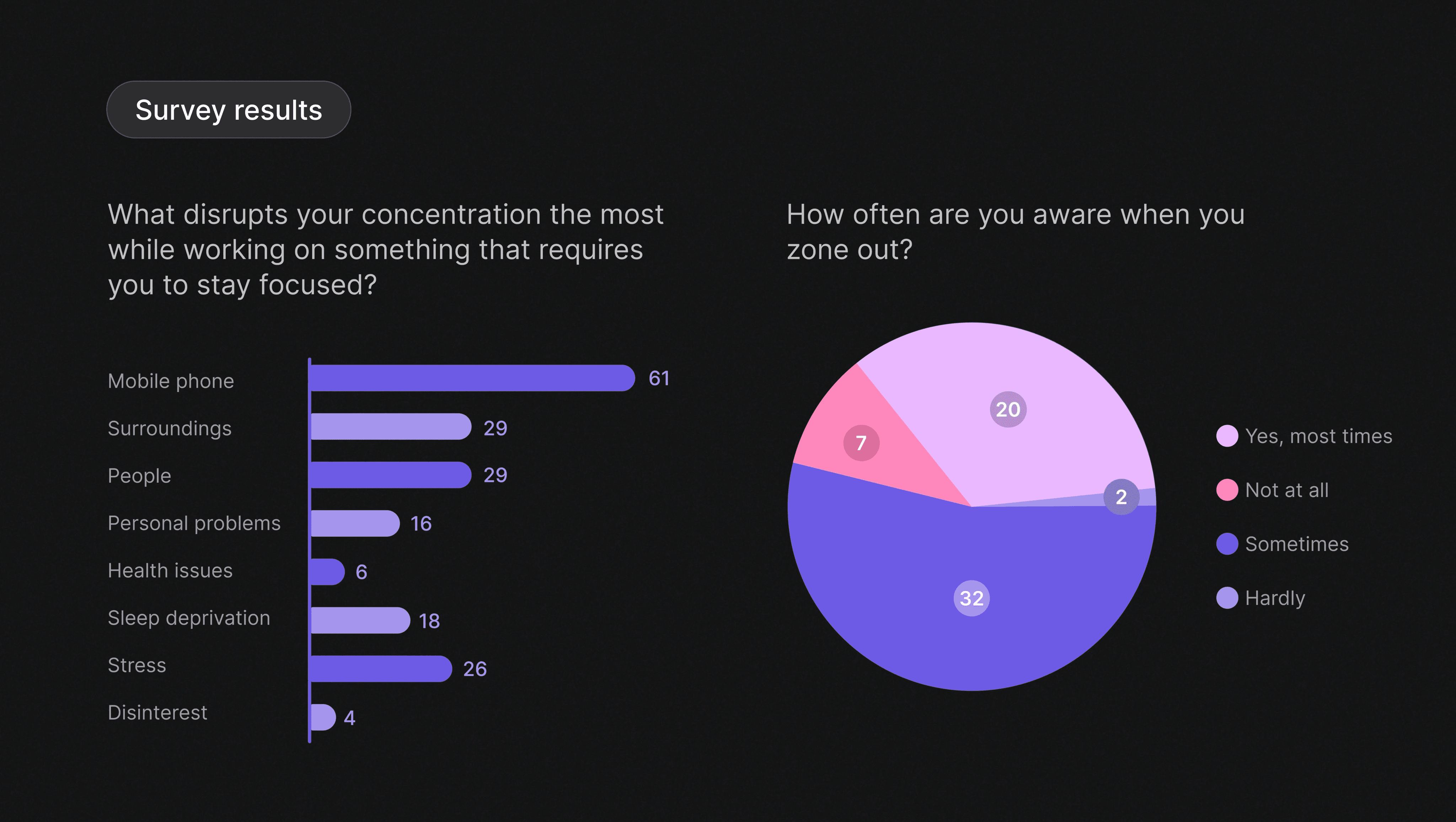 For my thesis, I chose a specific domain and problem to address. After exploring various options, I decided to focus on the issue of frequent distractions and lack of focus. Leveraging the knowledge gained from previous semesters, I conducted research to validate the problem and develop a solution. This involved designing the platform's structure, flows, wireframes, and high-fidelity screens for both mobile and desktop devices. Throughout the project, I collaborated closely with my mentor and received regular feedback to navigate any uncertainties and reach a final solution.