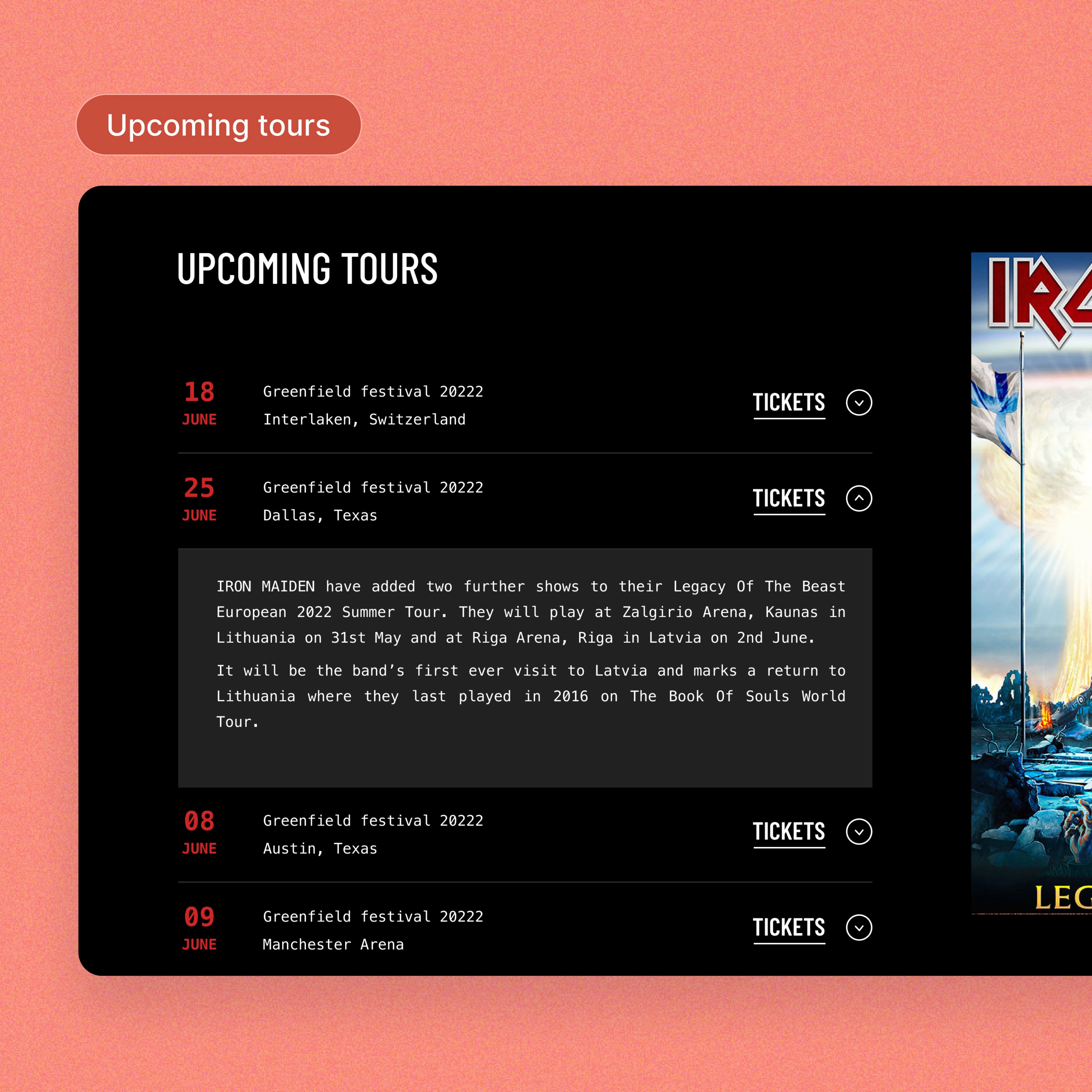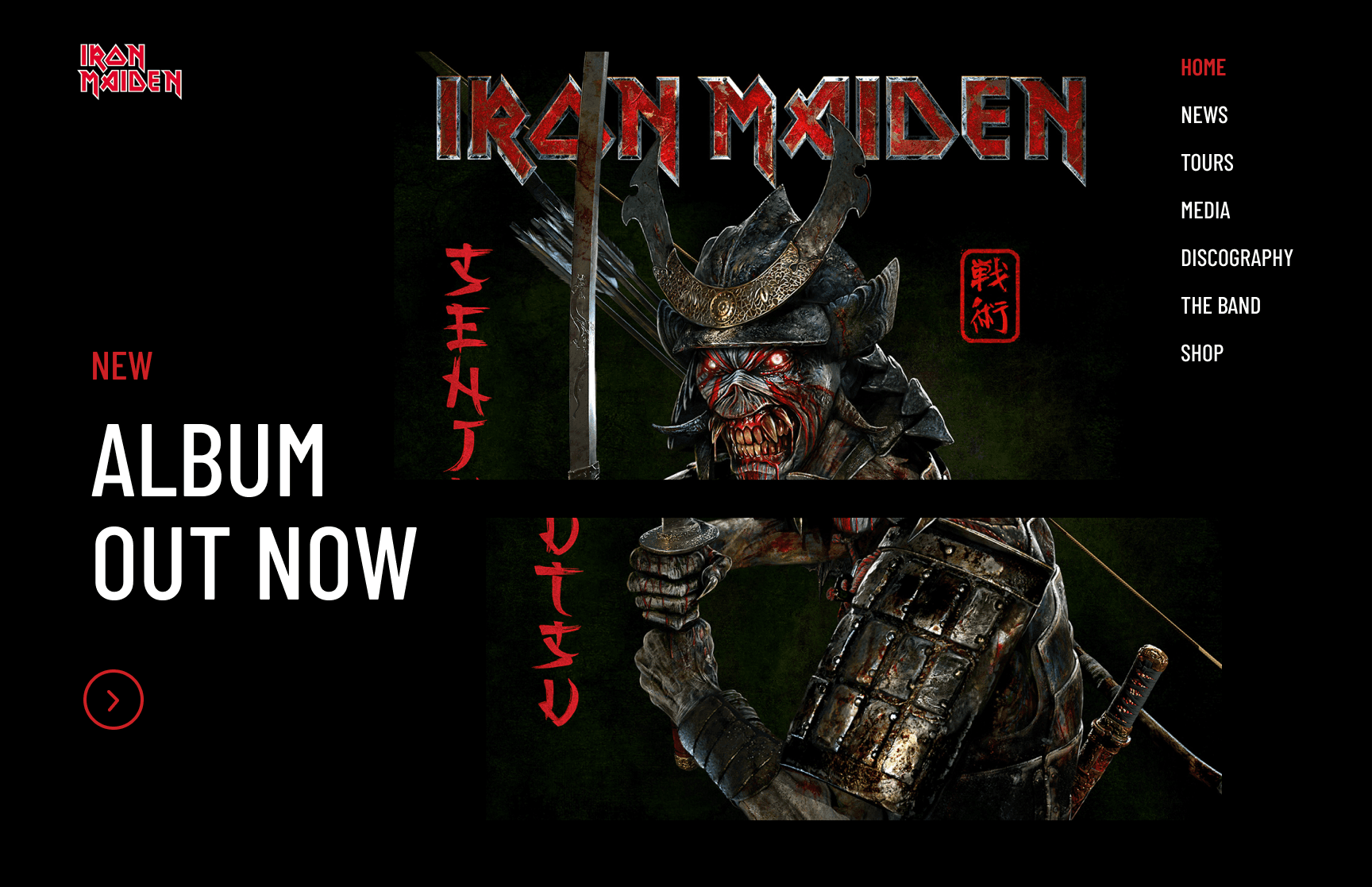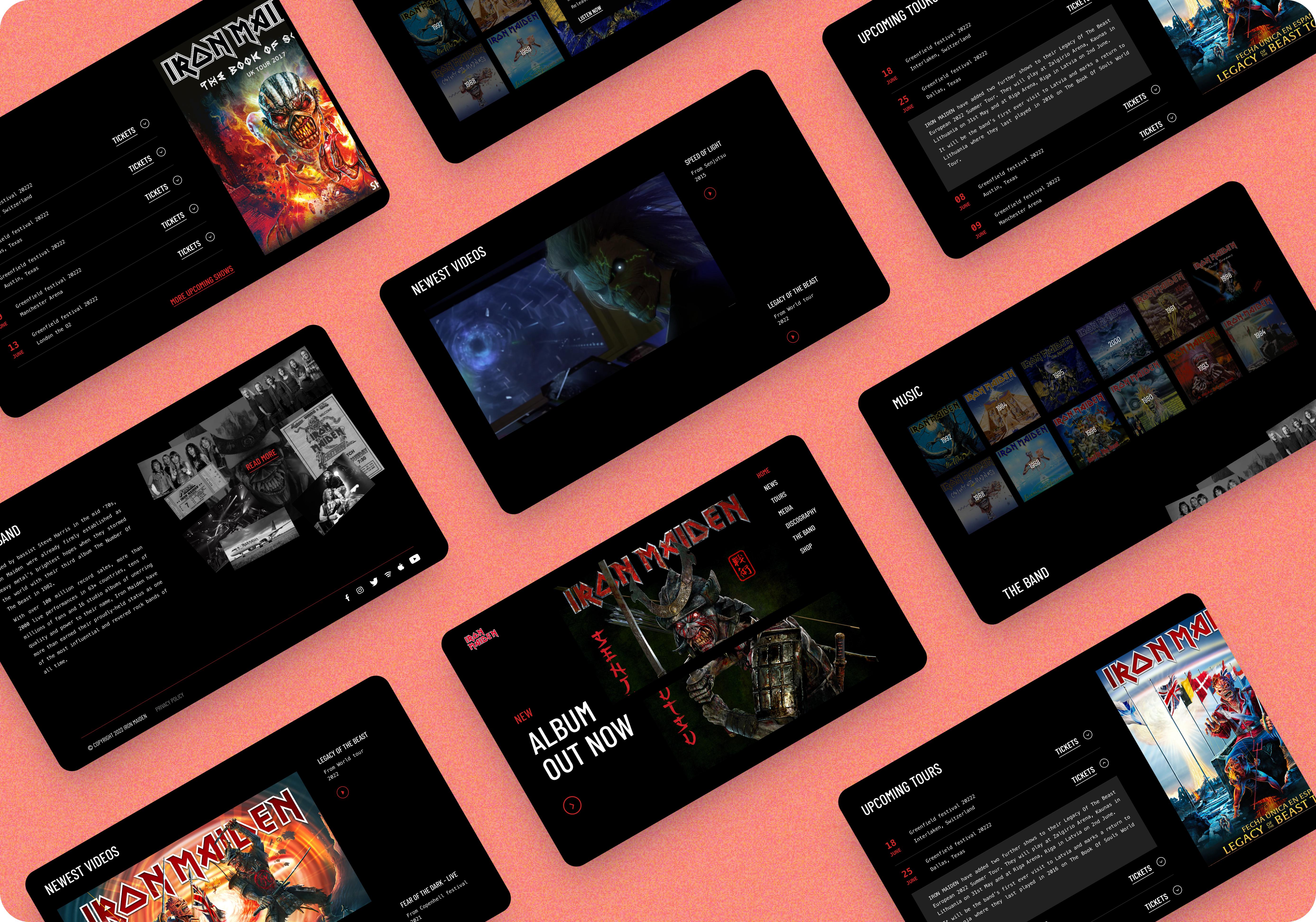 Revitalizing Iron Maiden's landing page, to infuse dynamic Micro interactions and modern design, creating an engaging showcase of the band's identity.