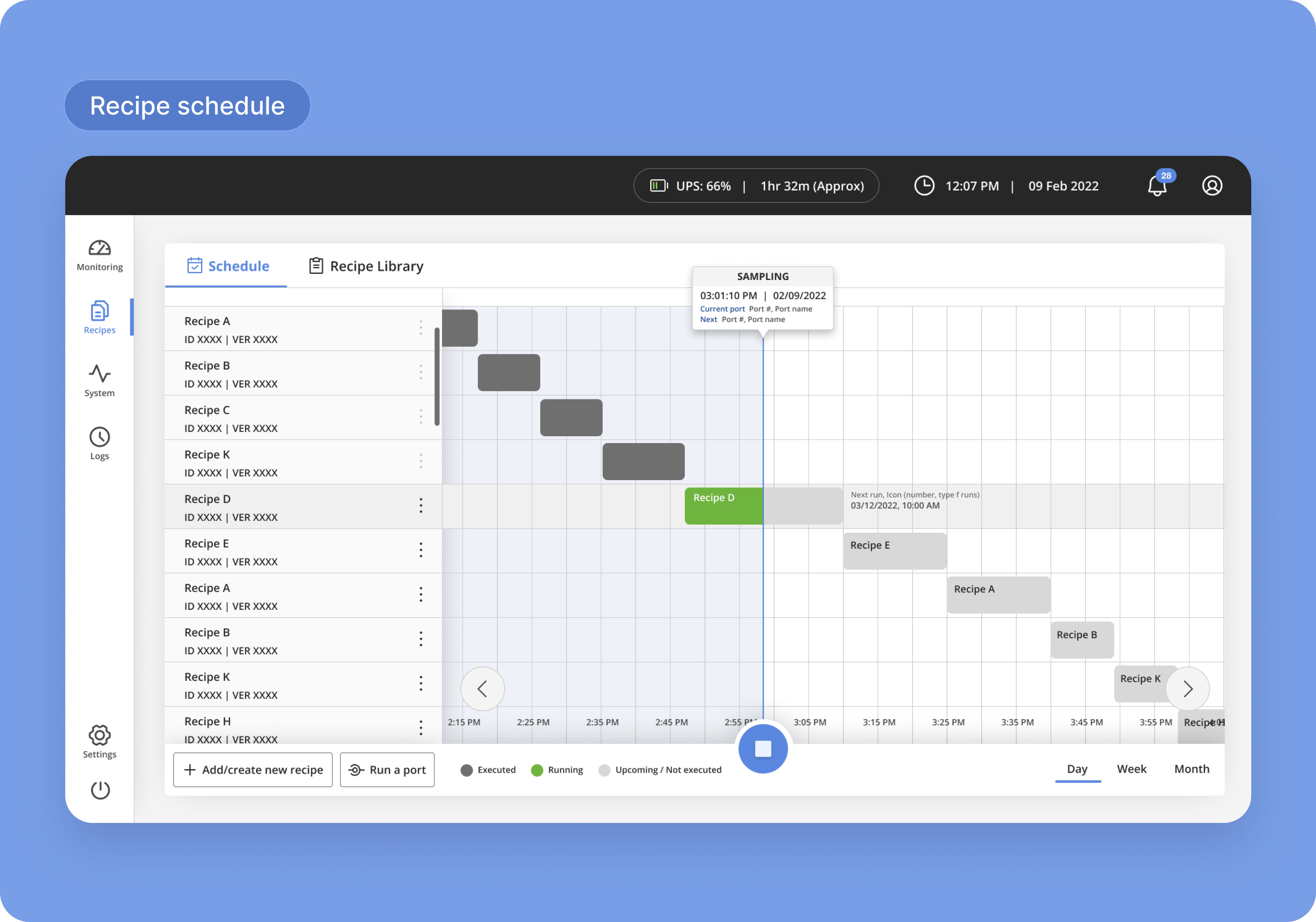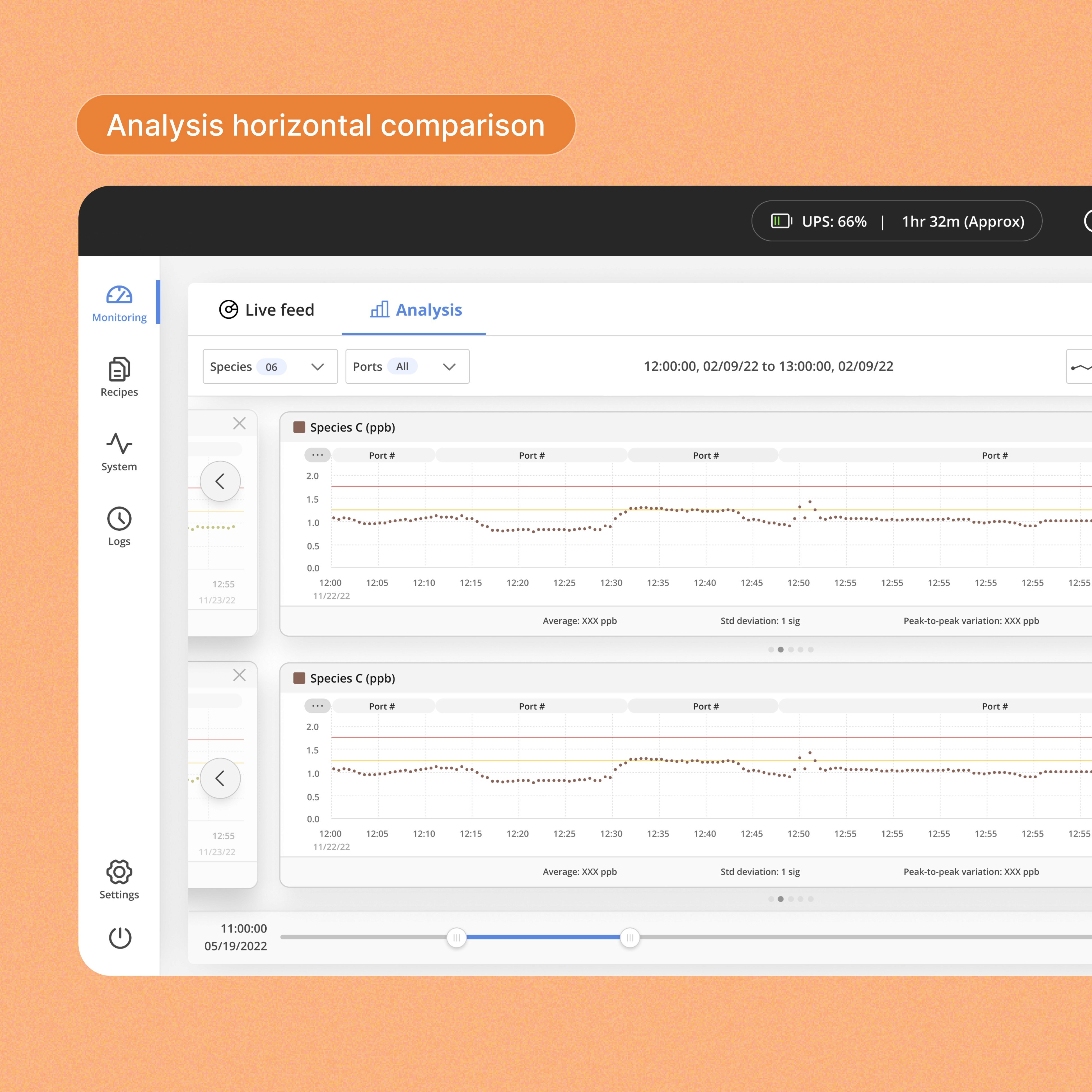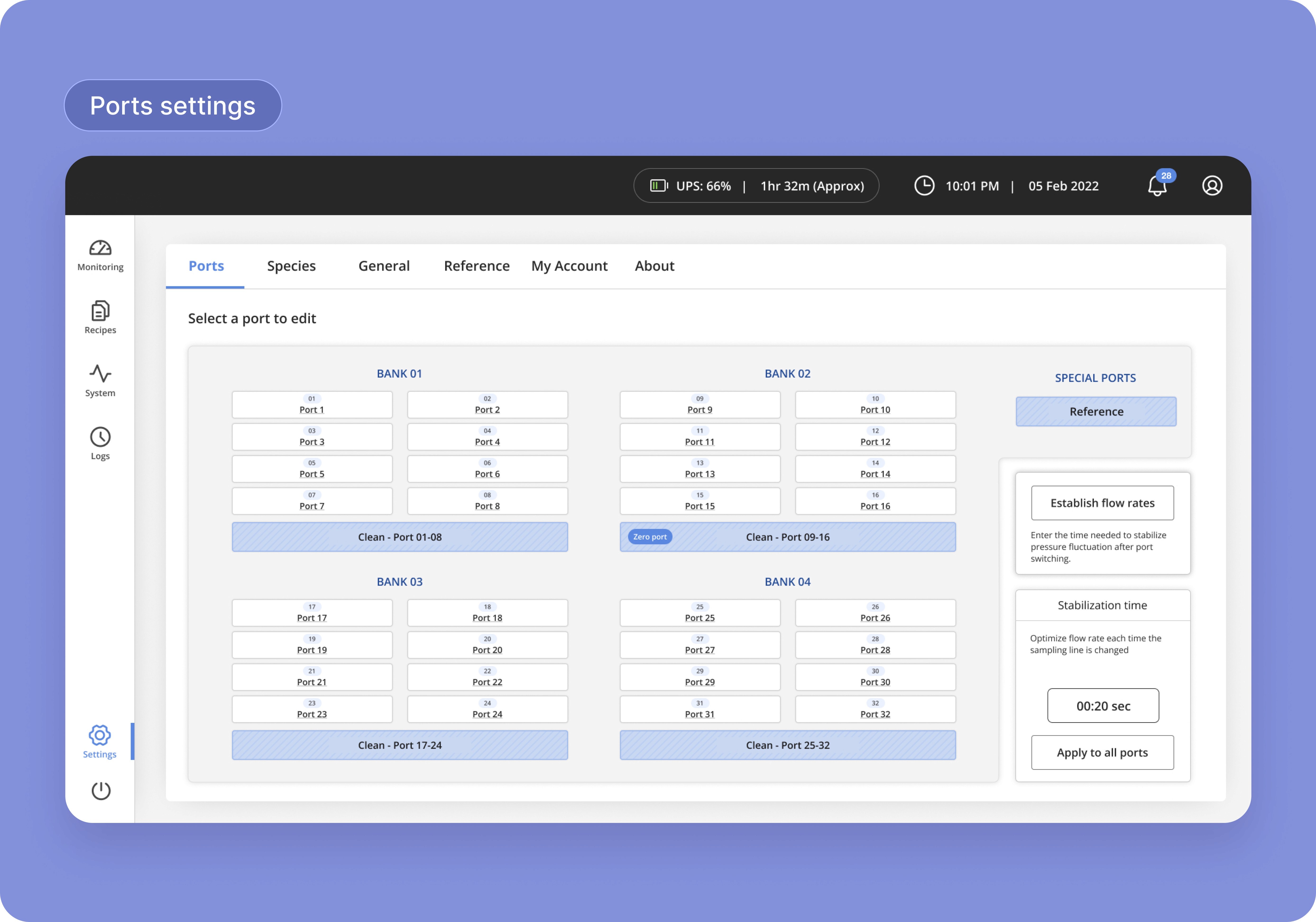 The dashboard facilitates real-time monitoring and analysis of various gases, issuing alerts for areas that need attention. It also empowers users to generate and share reports, along with the ability to continuously run new recipes for measuring gases in different ports.