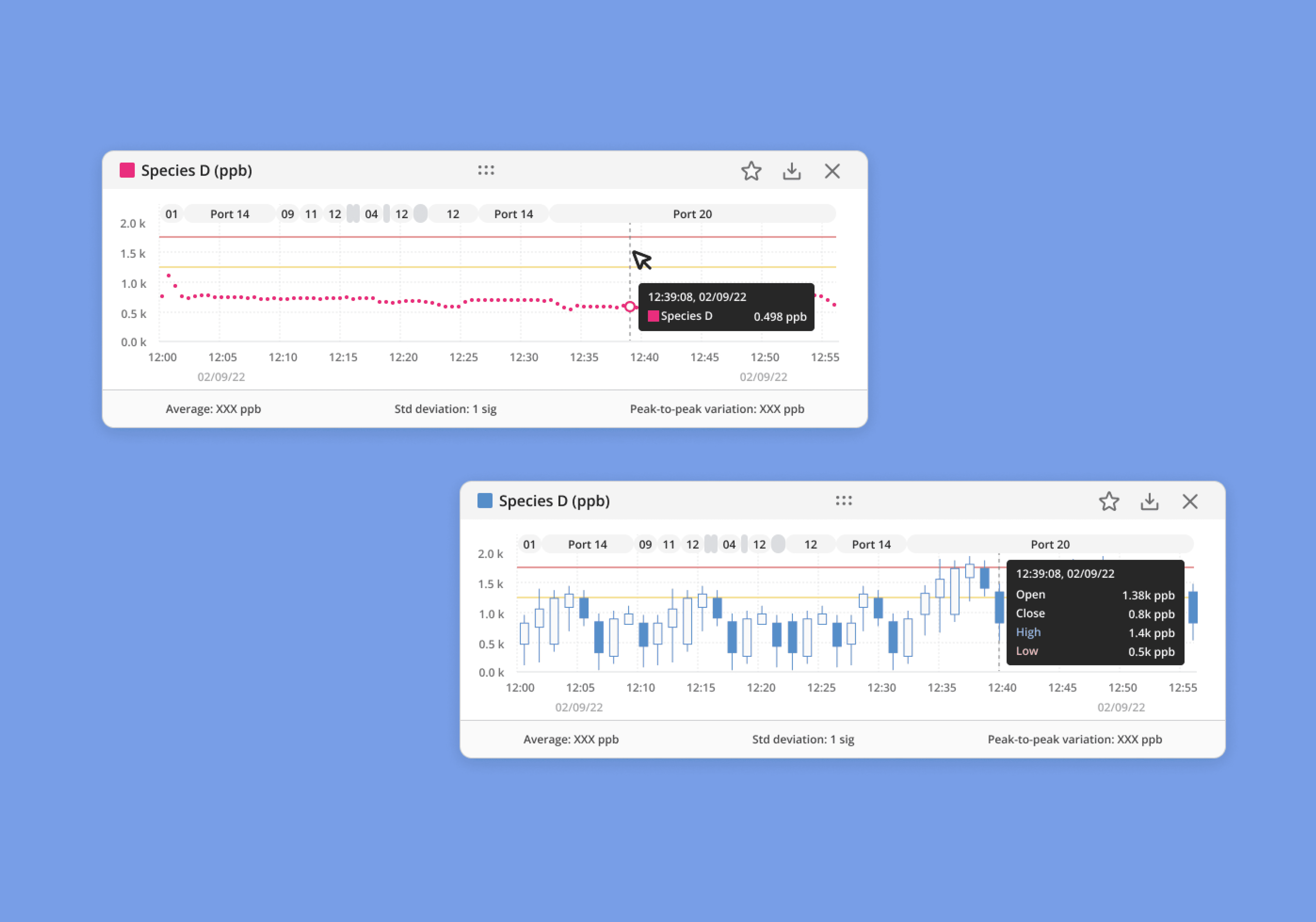 The existing UI presented an information overload, particularly on the monitoring screen, which is frequently used for real-time viewing of various gases. To address this, we employed progressive disclosure, offering users multiple zoom levels to navigate the content. By introducing four card sizes, each progressively zooming in, from a simple color indicator to a full-page view for each gas species, we effectively managed the complexity of the displayed data.